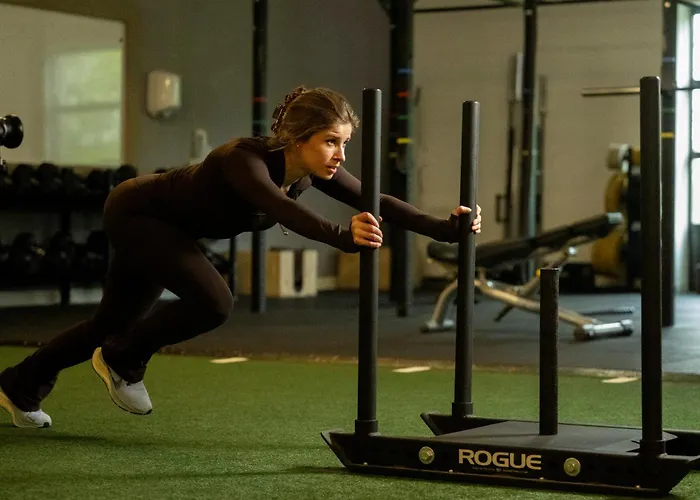 Treatments include a steam room, a treatment room, and sauna facilities. There is a fitness centre with a wide range of sports.
